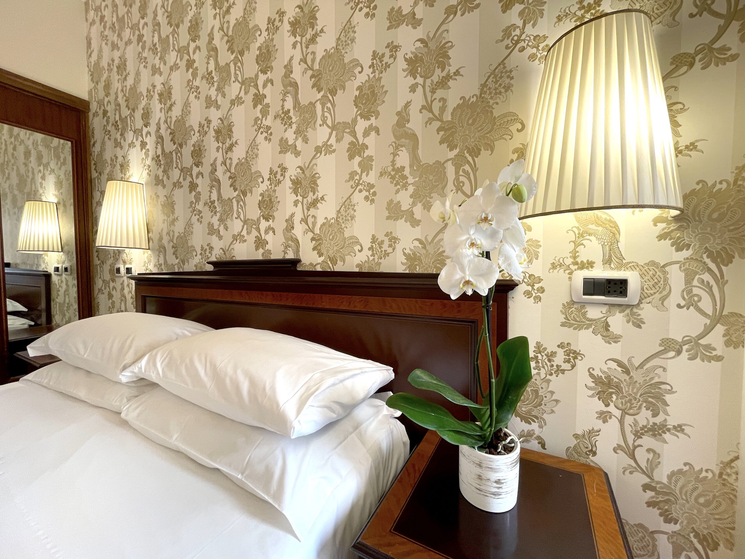 Tutte le camere sono arredate con mobili raffinati e confortevoli, con colori caldi che contribuiscono a creare un’atmosfera intima e accogliente; il rifugio ideale dopo una giornata di lavoro o una piacevole visita a Roma.